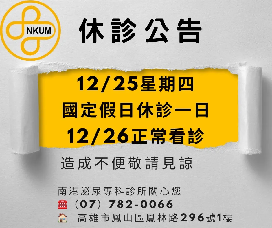 休診公告|南港泌尿科
