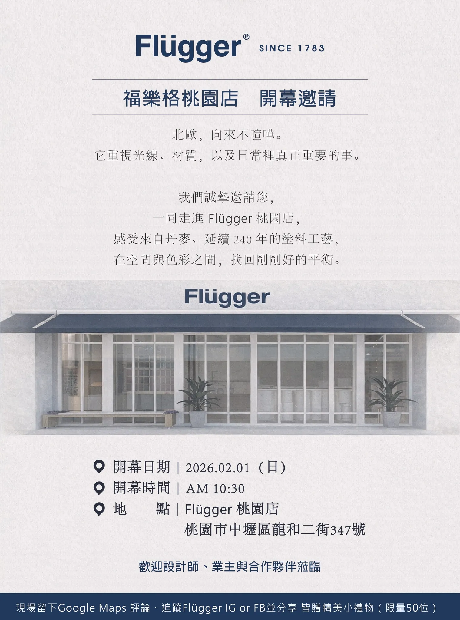 Flügger 桃園店即將正式在二月一日開幕(*´з`*)