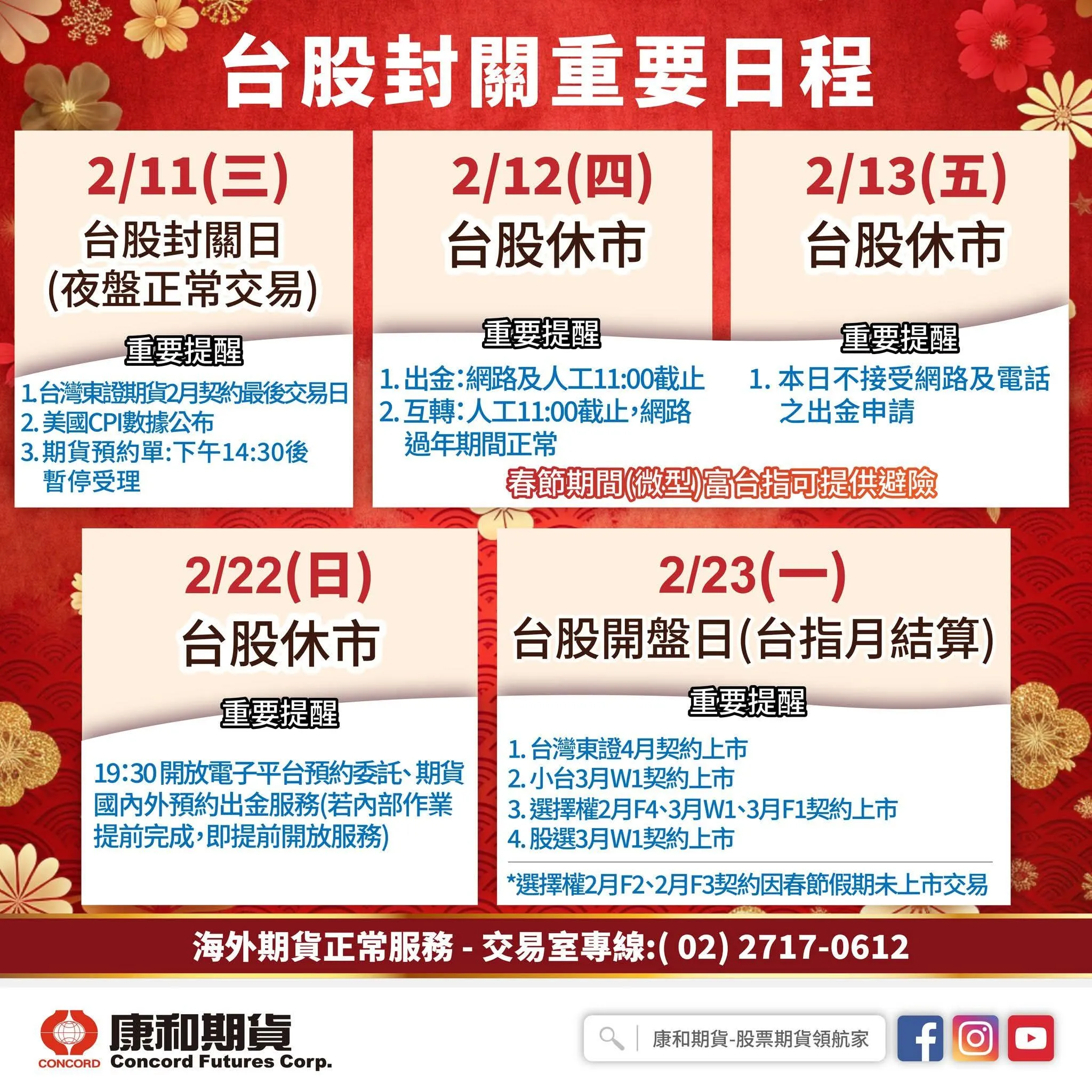 連假期間請提前做好資金與部位安排,留意市場波動與風險控管,掌握開紅盤後的行情機會!