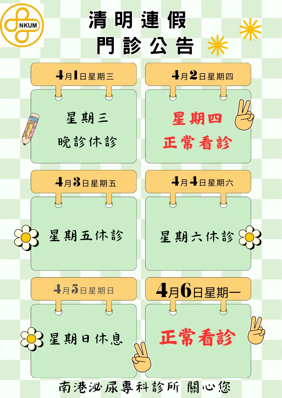清明連假 門診公告|鳳山大寮泌尿科