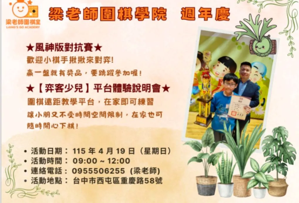 梁老師圍棋學院 115週年慶盛典!活動日期:115 /4 /19 (星期日)