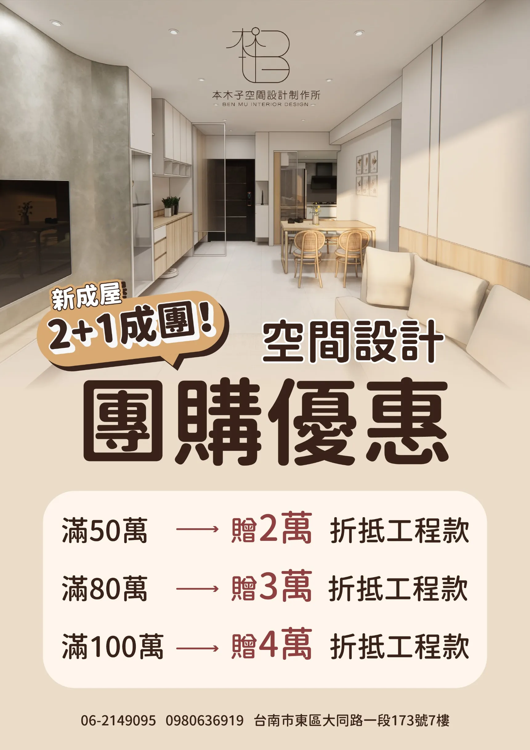 滿100萬:贈4萬(折抵工程款)