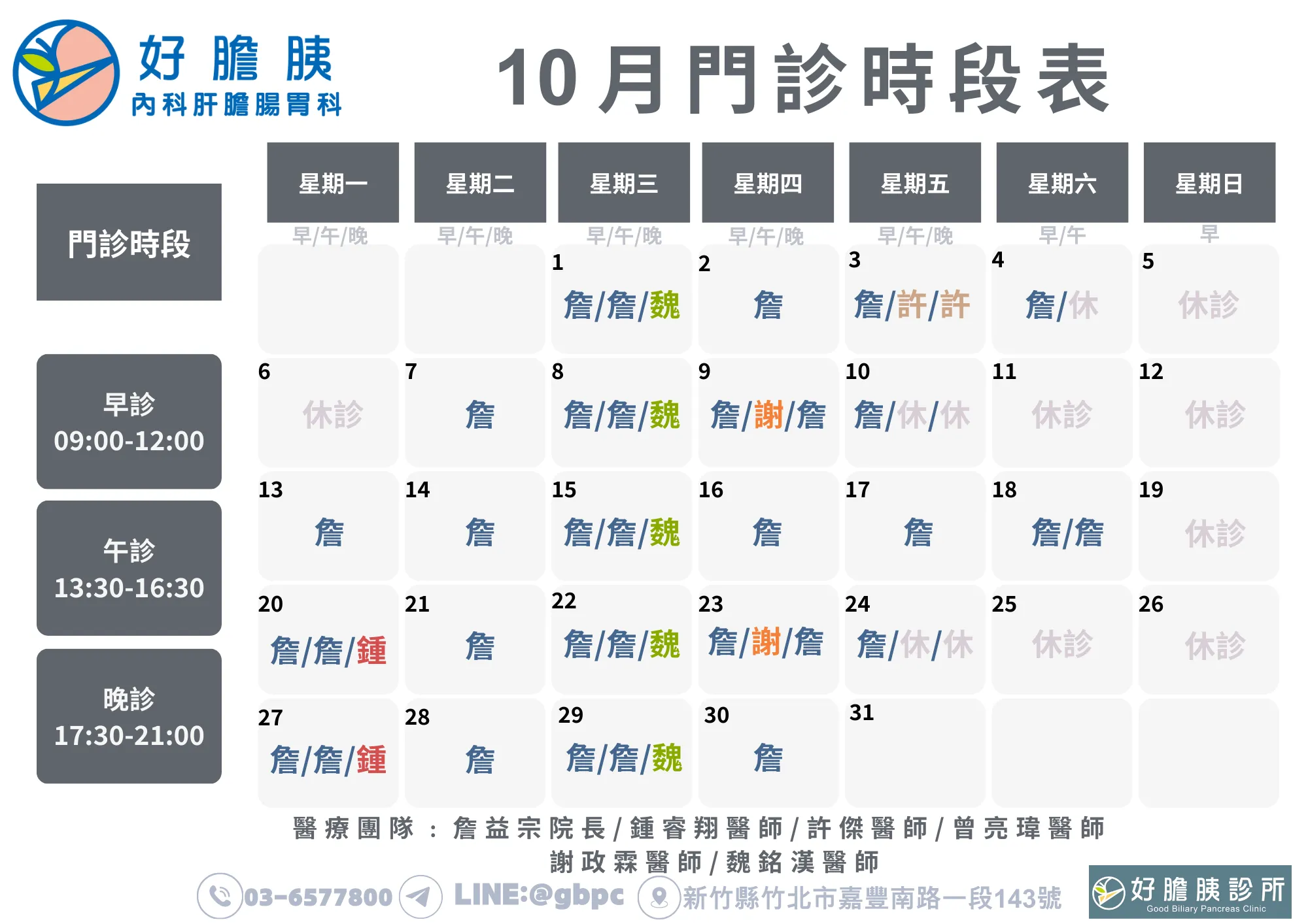 - 電話 : 03-6577800 地址 : 嘉豐南路一段143號 信箱 : goodbiliarypancreasclinic@gmail.com