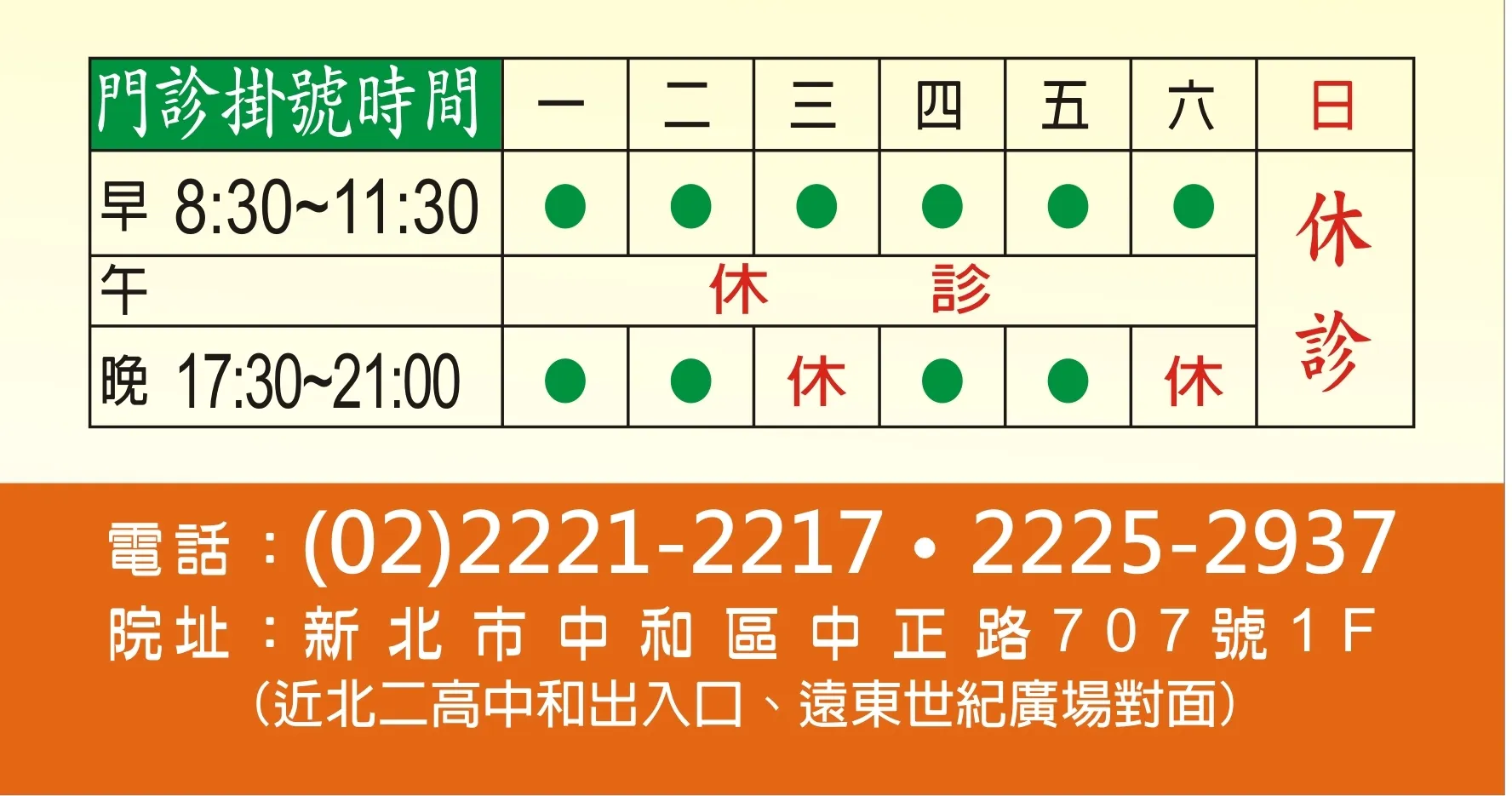 - 電話 : 02-2221-2217 地址 : 中正路707號一樓 (近北二高中和出入口,遠東世紀廣場對面)