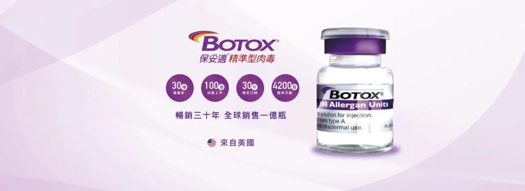 「保妥適」BOTOX是最早通過美國FDA(食品藥品管理局)核准的肉毒桿菌素品牌,也是由美國愛力根藥廠研發製造,約於1990年代起,被意外發現可改善皮膚皺紋,立刻引起全球關注,而其豐厚的簡歷,時至今日已刊登於100多個國際期刊醫學文章、圖書章節及教科書,被現今美容醫學廣泛使用