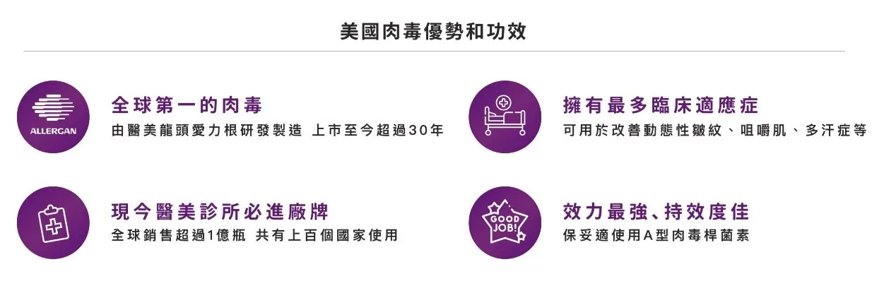 保妥適肉毒不僅是全球首款肉毒桿菌產品,具有豐富的臨床實驗和成功案例支持。它在治療皺紋和其他適應症方面經驗豐富,被廣泛接受和信任。