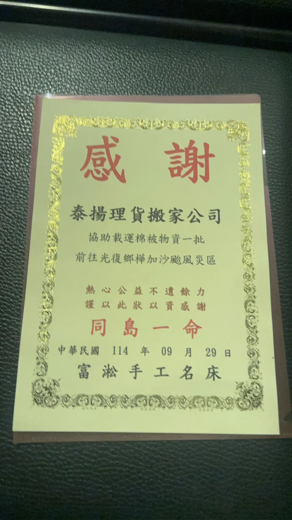 這次也很榮幸收到當地單位的感謝狀,這對我們來說不只是肯定,更是一種提醒──除了提供專業的搬家與搬運服務,我們更希望在社會需要的時候,能盡一份力量,陪伴大家共渡挑戰。